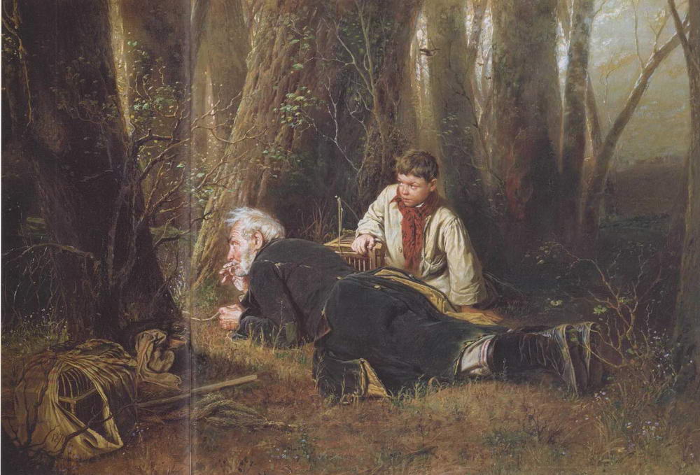 Но Перов по-прежнему остро ощущал «злобу дня», в том числе и живописную, и хорошо понимал, что время «остросюжетных» композиций ушло безвозвратно. «Искусство совершенно лишнее украшение для Матушки-России, а может быть, и не пришло то время, когда... любовь к нему будет законнее», - замечал он в одном из писем к Стасову. Кстати, союзником его здесь выступает не кто иной, как Чернышевский, в 1850-е годы ратовавший за «приговор явлениям жизни». В 1874 году он писал: «Переделать по нашим убеждениям жизнь русского общества... В молодости натурально думать о всяких химерах. В мои лета было бы стыдно сохранять наивность. Я давно стал совершеннолетним. Я давно увидел, в каком обществе я живу, какой страны, какой нации сын я. Хлопотать над применением моих убеждений к ее жизни значило бы трудиться над внушением волу моих понятий о ярме. Работать для людей, которые не понимают тех, кто работает для них, - это очень неудобно для работающих и невыгодно для успеха работы».