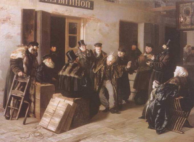 Илларион Прянишников. Шутники. Гостиный двор в Москве. 1865