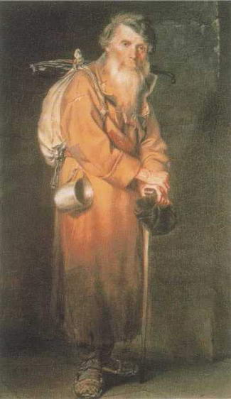 Первый из них - Фомушка-сыч с подозрительно-неодобрительной физиономической гримасой - может служить олицетворением критической позиции, как бы двойником художника, написавшего под именем Перова известные жанровые картины 1860-х годов (и кстати, написанный спустя два года Автопортрет враждебно-хмурым выражением определенно напоминает Фомушку-сыча); тогда как следующий Странник уже как бы обращен и «приветствует» Перова 1870-х годов. Он свободен от обусловленности только теми обстоятельствами, которые заставляют «нахохлиться», нахмуриться; ведь странник - именно тот, кто странствует, не будучи привязан к определенному окружению. Именно в аспекте такого более спокойного и благорасположенного взгляда пытается изобразить мир Перов в 1870-е годы. К этому необходимо добавить, что как раз с начала 1870-х годов именно такая настроенность художественной «оптики» становится общей для русского искусства в целом.