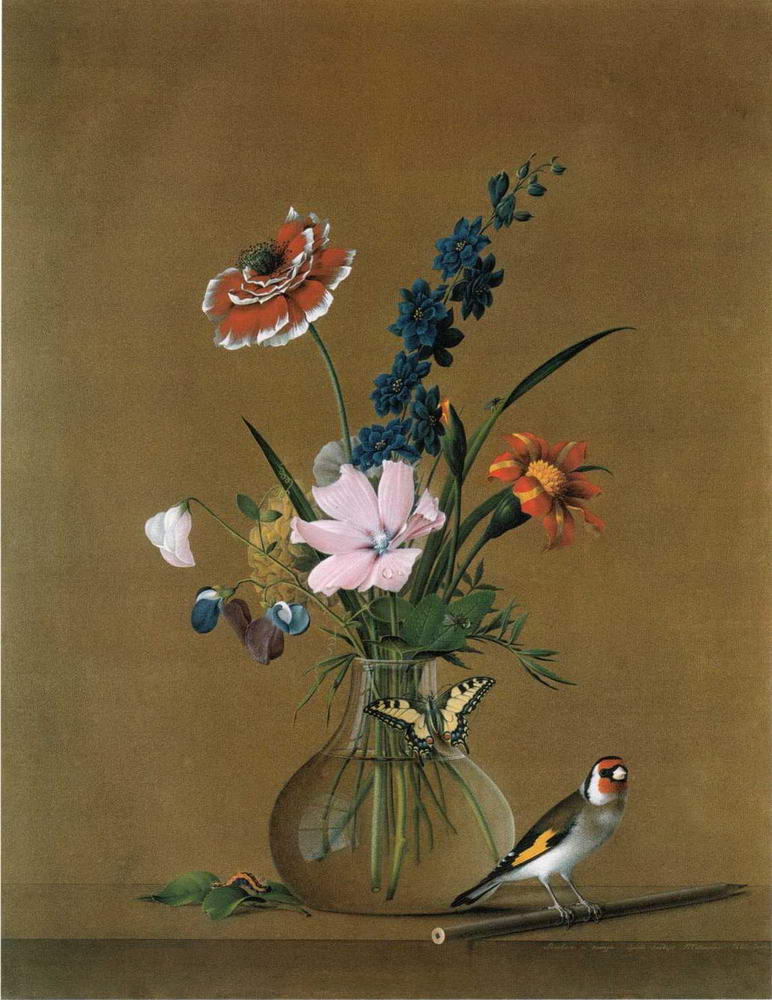 Натюрморты с цветами и ягодами Толстого называют "обманками". Создать абсолютную иллюзию сходства, чтобы зритель принял изображение за реальный предмет, обмануть взгляд - вот что предполагает "обманка". Чтобы обман удался, холст, например, с нарисованными корешками книг помещали за стеклянную дверцу книжного шкафа. Границы между "обманками", ботаническими рисунками, бывшими в начале XIX века в большой моде и также предполагавшими точность воспроизведения структуры стебля растения, рисунка его листьев, лепестков, и произведением искусства зыбки. Для художника в конкретной точности изображения заключено особое чувство зрительной выразительности.