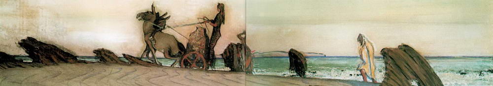 Сам миф предлагал Серову такой строй изображения, который показывал бы античность в стиле воспоминания, грезы, мечты - существования на грани сна и яви. Выбор именно этого сюжета диктовался, по-видимому, тем сводным представлением об античности, которое сложилось в начале XX века. Античность, которая многократно, начиная с эпохи Возрождения, меняла свой облик в зависимости от археологических открытий, философских доктрин, наиболее внушительных и влиятельных интерпретаций ученых, оказывается чем-то неуловимым, неопределенным, зыбким, миражным.