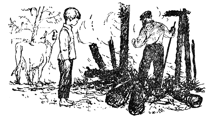 Пошел Васька к отцу. Отец на пожарище ковырялся, обгорелые бревна в кучу стаскивал. Хочется Ваське что-нибудь бате сказать. Хочет он сказать, что и учиться будет, курить не станет, будет бате во всем помогать. А отец молчит. На Ваську глядеть не хочет. И лицо у него сумрачное. Брови сдвинуты. Щеки опали.