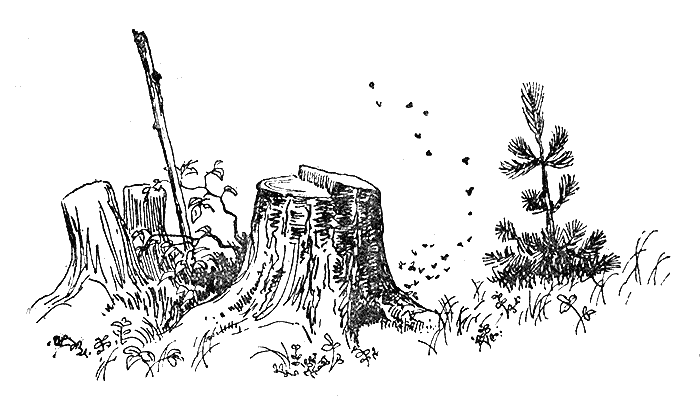 Гошка внимательно оглядел соседние пни. Рядом было еще два осиных гнезда. Осторожно приподнявшись, он воткнул в землю палку для заметки и быстро пошел к Сереге.