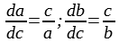 Г: (нехотя выходит к доске, пишет, см. рис. 1). Да легко. Берем бесконечно малые приращения катетов a, b и гипотенузы с, сохраняющие подобие с исходным прямоугольником и получаем такие дифференциальные соотношения: