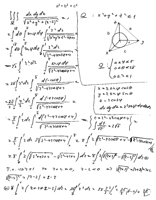 Т: (быстро просматривает «доказательство» Г.). В дифференциальном уравнении неправильно разделены переменные. Будет плюс, а не минус (исправляет минус на плюс в 3-й формуле). Давайте выметайтесь все. Мне убираться надо.