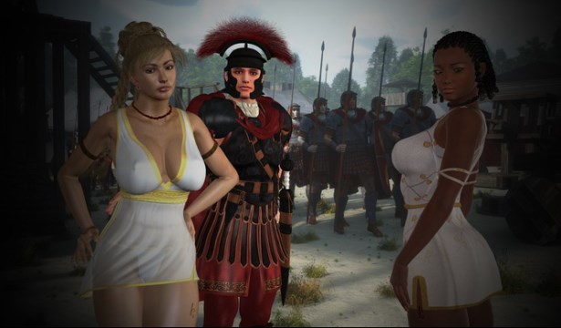 Догонявшая девушка была невысока ростом, но весьма фигуриста. В отличие от высокой, эта была одета в короткую, шёлковую тунику рабыни, закрепленную узлом у неё на груди. Такой одинарный узел развязывается от малейшего рывка и позволяет одежде распахнуться и представить рабыню во всей её красе для удовольствий владельца. Общим у обеих женщин были рабские ошейники.