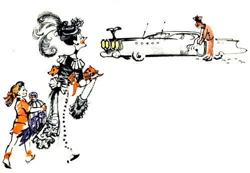 — Как?! — воскликнула дама, которая привыкла всё решать сама. — Ведь я назначаю тебя моей горничной. И потом, разве ты не взяла в задаток булочку? Садись быстрее!