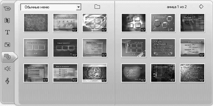 Пример доступных шаблонов меню в Альбоме показан на рис. 11.5.