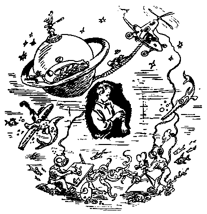 …Четыре часа в воздухе прошли незаметно. Теперь воздушный корабль снижался. Промелькнули облака мимо окон и оставили на стеклах миллионы крошечных капелек. И сразу, точно кто-то сдернул мешающий смотреть занавес, — внизу открылась земля. Ребята так напряженно вглядывались в даль, что их носы совсем расплющились об оконное стекло. Что они узнают о судьбе Пузырька и машины? Вот в редких облачных разрывах промелькнули первые малюсенькие, словно нарисованные, дома. Москва!