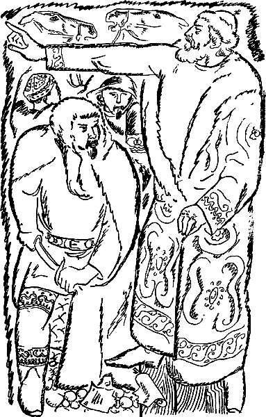 Там в сенях у порога лежат две девушки-гречанки, охраняя покой своей госпожи, — Харитина и Пульхерия. Им тоже не спится в бурную эту ночь на исходе зимы, когда ледяное царство начинает рушиться.