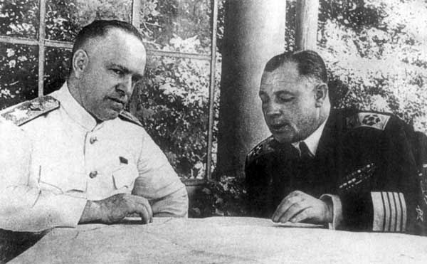 Маршал Советского Союза Г.К. Жуков и Адмирал Флота Советского Союза Н.Г. Кузнецов. Потсдам, июль 1945 г.