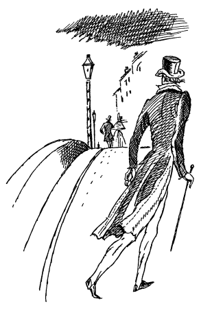 Долго шел он таким образом, в почтительном расстоянии от старика и молодой девушки, строя в голове своей бог знает какие воздушные замки, и незаметно очутился у Летнего сада… В продолжение этого пути девушка два раза быстро оглядывалась, и два раза серенькие, живые глазки ее встречали пальто шоколадного цвета.