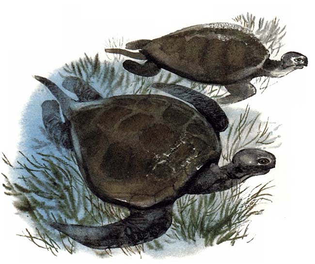 Тёмные выпуклые щиты блестят среди волн. Плывут черепахи через океан к далёкому берегу.