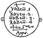 В час 9 при прибывающей Луне следует повесить эту печать на шею прокаженному. Дай также больному выпить вина, в котором печать лежала некоторое время. Каждый год в июле ее необходимо делать снова.