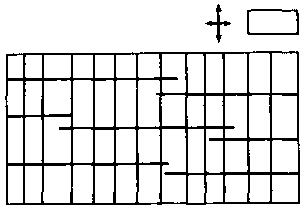 И вновь немного изменим условия. Пусть потенциальная функция также изотропна — потенциал во всех направлениях одинаков, но при появлении элемента в зоне его разгрузки появляется анизотропность. Элемент разгружает потенциал в параллельном себе направлении и не разгружает в перпендикулярном, т. е. вблизи элемента возможен перпендикулярный ему элемент и невозможен параллельный. В этом случае, если один элемент входит в зону разгрузки другого, возможны два пути — выйти из зоны разгрузки (вернуться в область с высокими значениями потенциала) или развернуться в направлении, перпендикулярном другому элементу. В этом направлении потенциал здесь также не разгружен. Если элемент подходит к другому под очень острым углом, то он скорее выйдет из зоны разгрузки, в противном случае — развернется к этому элементу и подойдет к нему под углом, близким к прямому (рис. 101). Если, удлиняясь, элемент зайдет в область, где перекрываются зоны разгрузки двух других элементов (рис. 102), то дальнейшее его продвижение в этом направлении станет невозможным, так как составляющая потенциала в этом направлении здесь разгружена. Но в направлении, перпендикулярном этому направлению, потенциал не разгружен, поэтому вершина элемента, развернувшись, подойдет к одному из двух элементов (см. рис. 102). С учетом этой особенности при принятых условиях возникнет структура, подобная изображенной на рис. 103. Отметим, что каркас этой структуры был задан таким же, как на рис. 92.