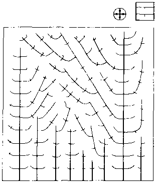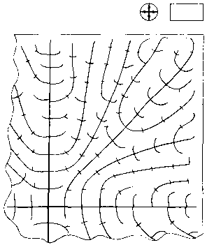 Мы рассмотрели и показали лишь простейшие, элементарные рисунки, составленные из линейных элементов, — задавались фиксированная ширина зоны разгрузки и линейное распределение ее величины. Но возможны и другие варианты. Например, можно задавать, что ширина зоны разгрузки зависит от длины элементов или от значений потенциала в этой точке. От длины элемента может зависеть и степень концентрации потенциала в его вершине. Величины разгрузки соседних элементов могут быть взаимосвязаны, например, могут суммироваться. Ширина зоны разгрузки с одной стороны элемента может отличаться от разгрузки с другой. Появление бокового притока может стимулировать его появление с противоположной стороны, а может и наоборот — исключить. Потенциальный рельеф по мере своего воздымания может изменять свою общую первоначальную конфигурацию. Со временем может измениться и направление главной составляющей потенциала. Все эти варианты мы рассматривать не будем. Оставим для самостоятельного изучения и задачу о развитии в одном пространстве взаимосвязанных линейных элементов разной природы. При желании читатель, наверно, и сам сможет конструировать соответствующие этим условиям абстрактные структуры. Сейчас же вернемся к конкретным рисункам.