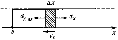 Представим бесконечно длинный однородный упругий брусок, свободно лежащий на ровной поверхности. Начнем его равномерно охлаждать. При этом в нем возникнут растягивающие напряжения x. Как только они достигнут предела прочности, брусок разорвется. Так как условия однородны, то образование разрыва может произойти в любом месте.
