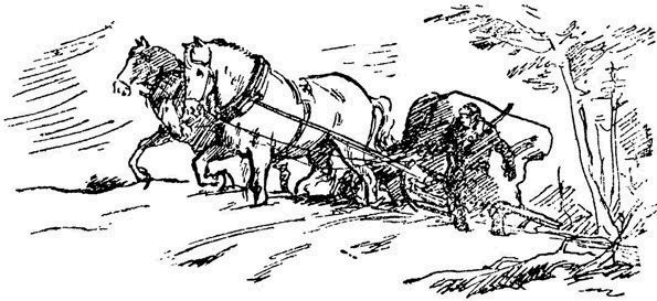 В лесу выросла конюшня, сложенная из тонких елей, на которые набросали ветви. В аккуратных стойлах появились фанерные дощечки с надписями: «Линкор», «Торпеда», «Компас», «Ураган», «Мина». Так по-флотски окрестил Савкин безымянных друзей. И только над огромным серым битюгом висело мирное слово «Крошка» — в память первого знакомства капитана Розе с лошадьми.