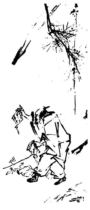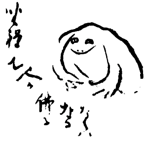 Какой спокойный пруд!И всплеска звук!Изобразив мартышку, свисающую на одной лапе над прудом, держась за ветку, Башо откомментировал этот рисунок следующим: