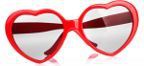 под цветными стеклами солнцезащитных очков в виде сердечек.