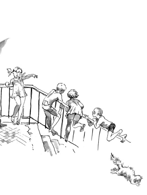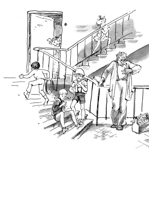 …Старик Митин привинчивал к двери новый замок и совсем забыл, что носит с собой котёнка. Как только Гум-гам сказал своё знаменитое «р-раз!», Митин почувствовал непонятную тяжесть в кармане. Он успел лишь выпрямиться – перед его глазами мелькнула жёлтая молния, и какой-то рыжий зверь побежал вниз по лестнице. Митин хотел закричать, позвать жену, но передумал.