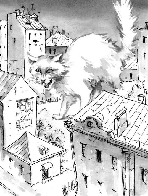 – А ещё больше? – дрожащим голосом спросил хозяин кота. Он был испуган, но не растерялся. Всё же перед ним был знакомый зверь: хоть и большой, но Рич. – Например, может он стать с дом?