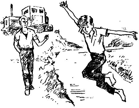 — Смотри! — и Микола ловко перепрыгнул канаву и оказался рядом с Федосом. Потом взмахнул руками и в то же мгновение водворился на свое старое место.