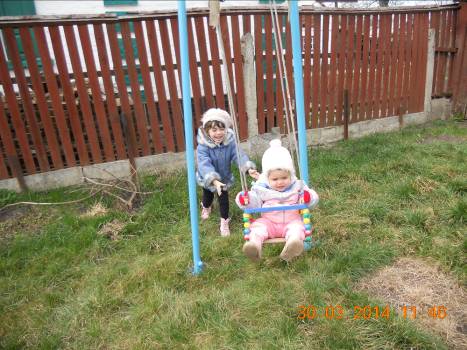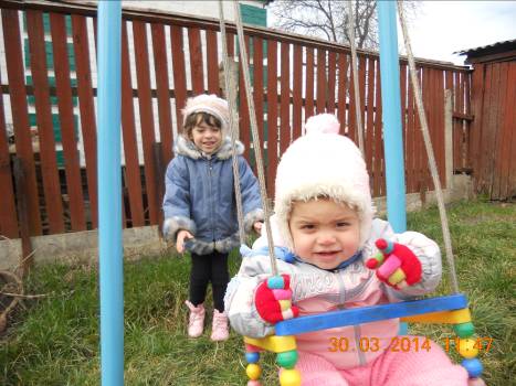 Она с папиных рук на качели