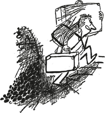 Папа спустился в подвал за коричневым чемоданом, который плохо закрывается, за большим синим и за маленьким от тёти Эльвиры, а я поднялся к себе в комнату за своими вещами, которые мне будут нужны на отдыхе. Мне пришлось ходить три раза, потому что в стенном шкафу, в комоде и под кроватью куча вещей. Я всё стащил в гостиную и стал ждать папу. Из подвала доносился грохот, а потом папа пришёл с чемоданами, весь чёрный и недовольный.