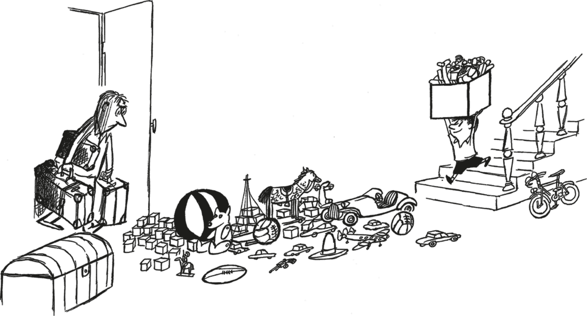 – Это что ещё за хлам?! – закричал папа. – Не думаешь же ты, что мы возьмём с собой этого плюшевого медведя, эти машинки, эти футбольные мячи и этот конструктор?