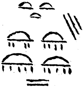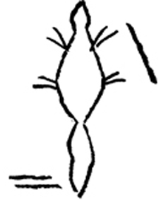 Три верхних знака, по словам деда, грубо изображали глаза и нос зверя, затем пониже передние лапы и еще ниже – задние лапы.