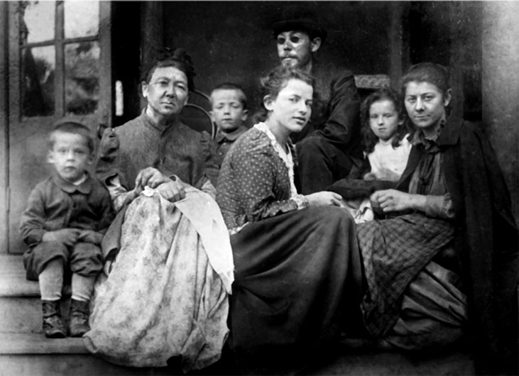 Кто запечатлен на июньской фотографии? Мария Павловна Чехова, сестренка учительницы Александры Алексеевны Лёсовой – круглолицая, гордая собой Поля, Александр Павлович в шляпе и темных очках, ужасно серьезный, кажется, «выпимши». В центре кадра, боком к съемочной камере сидит Лёсова и, наконец, Евгения Яковлевна – мать Александра, Антона, Ивана, Марии, Михаила Чеховых, бабушка Коли и Тоши, которые на этом снимке забавно выглядывают, словно птенцы из гнезда, семейного, разумеется.