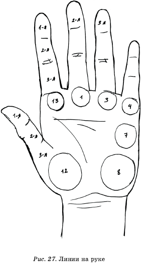 На ладони можно обнаружить самые разные знаки, однако в хиромантии принято принимать во внимание лишь те, которые выражены отчетливо. Знаки, как и линии, на протяжении жизни могут появляться и исчезать(рис. 27.).