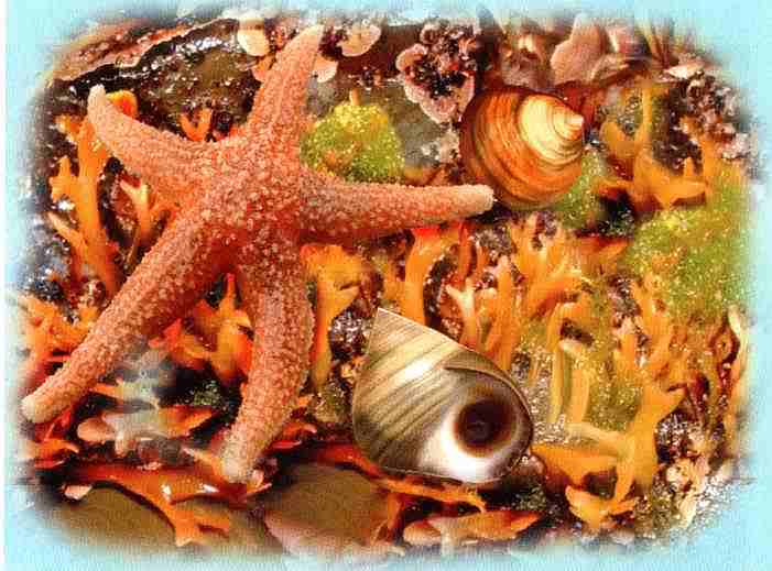 Простор приливной зоны украшен песчаными выбросами морских червей. Им отлив не страшен — сидят в глубоких норках, только вилами из песка их и достанешь. Песок — их дом родной. Не зря этих существ метко называют пескожилами. На мелководье отлива можно увидеть другого знаменитого беломорского червя — нереиса. Под каждым небольшим отвороченным камнем суетятся рачки бокоплавы. Забредешь в высоких сапогах по колено в воду — уже видны морские звезды. Пахнет морскими водорослями. Их здесь много. Хлопают под ногой вздутия-поплавки, удерживающие на плаву коричневые слоевища фукусов. Можно набрести на толстый, похожий на канат вырост ламинарии. Он прочно крепит эту съедобную водоросль к подводным камням. Однако шторма порой побеждают и его. В воздухе крики серебристых чаек, нередко замирающих четкими изваяниями на прибрежных камнях, и тонкий писк красноклювых куликов-сорок, низко летящих над светлой водой.