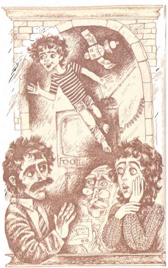 Братьев отличала не только разница в возрасте, но я футбольные симпатии: Джип болел за национальную сборную, а Флип — за миланскую команду, но это не имеет к нашему рассказу никакого отношения. А рассказ начался ровно в 18 часов 30 минут, когда Джип вдруг почувствовал, что какая-то неведомая сила выхватила его из мягких объятий кресла. Мгновение он повисел в воздухе, словно стартующая в космос ракета, затем пронесся через всю комнату и пулей влетел прямо в телевизор.