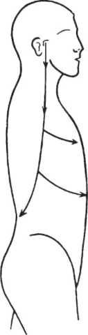 Нормальное здоровое расслабление представляет собой максимальное снижение мышечного напряжения, не переходящего допустимую границу, т. к. мышцы должны в то же время выполнять свои функции удержания осанки, формы позвоночника и всего туловища, причем с минимальным напряжением. Поэтому отклонение от вертикального положения рассматривается как нарушение осанки (прим, авт.)