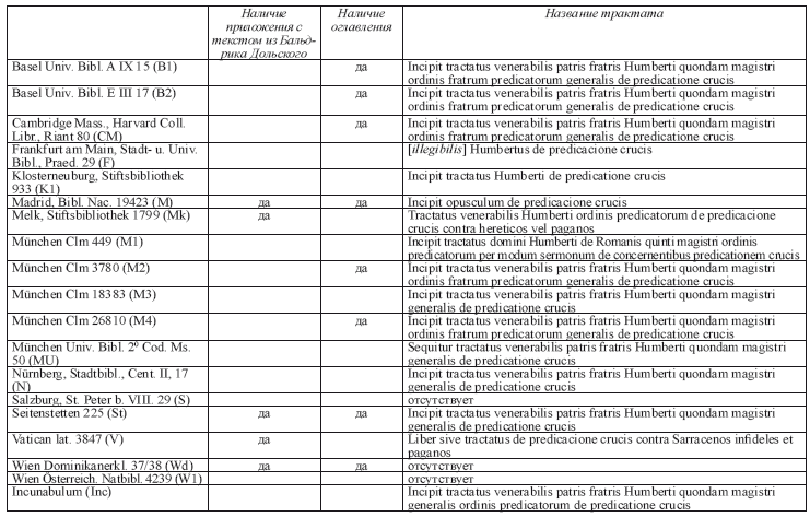 Portnykh V. Le trait'e d’Humbert de Romans (OP) “De la pr'edication de la sainte croix”. Une hypoth`ese sur son utilisation dans les guerres saintes du XV si`ecle // Revue d’histoire eccl'esiastique, 3–4(2014). P. 588–624.