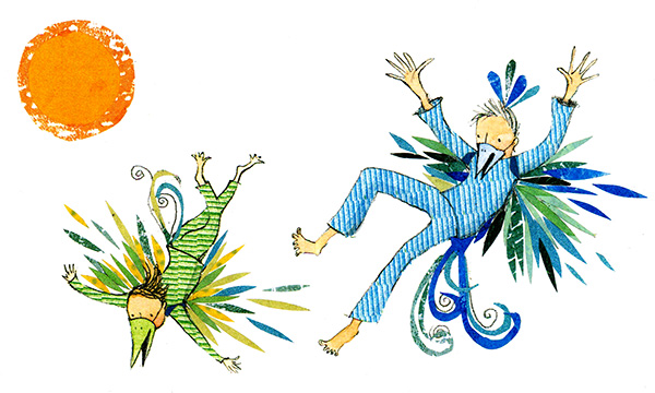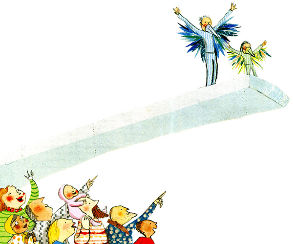 — А-а-а-ахххх! — выдохнул мистер Пуп, когда папа вдруг захлопал крыльями часто-часто и полетел вниз. Но Лиззи не сбилась с ритма! Громко хохоча, она упорно махала крыльями и летела, летела, летела…