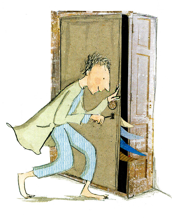 Проскользнув в свою комнату, папа, по-прежнему на цыпочках, обошёл кровать и подкрался к шкафу Бережно вставив ключ, он отомкнул замок и приоткрыл дверцу Выдохнул — и радостно улыбнулся.