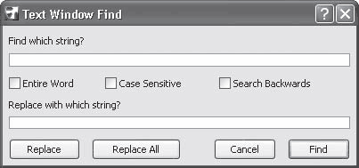 · кнопка Cancel (Отменить) – закрывает окно Text Window Find (Поиск в текстовом окне);