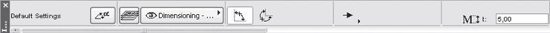 При выделении размерной надписи в ее левом нижнем углу появляется характеристическая точка. Щелчок на ней вызывает панель редактирования с операциями перемещения, поворота, зеркального отображения и тиражирования. Особенность выполнения этих операций (кроме последней) заключается в том, что при изменении положения размерной надписи изменяется длина размерной полки, которая становится такой, чтобы проекция размерной надписи не выходила за ее пределы.