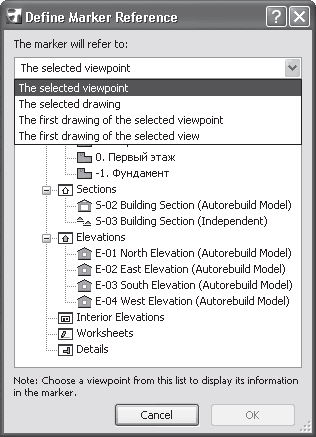 В области Marker (Маркер) (рис. 11.4) расположены элементы управления для определения вида разреза на плане этажа. Они сгруппированы в двух разделах.
