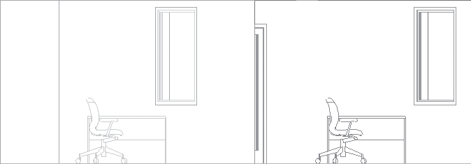 Теперь на разрезе нет ничего лишнего. Видны части двух стен, стол, кресло, окно и дверь. Но задача еще не решена. Как убрать стену, чтобы можно было посмотреть расположение мебели в соседней комнате? Удаление или перемещение стены на невидимый слой не решает задачи в общем смысле. А вдруг нужно, чтобы дверь осталась на своем месте, или на части стены, примыкающей к углу, висят картина или бра, которые желательно показать?