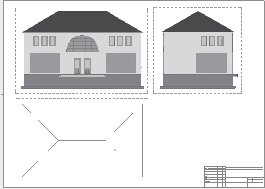 7. Используя необходимые инструменты, такие как изменение масштаба вида, отключение видимости штриховки (для крыши), уменьшение области вида и т. д., скомпонуйте необходимый чертеж (рис. 13.17).
