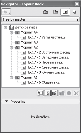 • Флажок Insert break between sequences (Разделить последовательности видов). Действие установленного флажка зависит от положения переключателя Sequence by (Упорядочить по). Если он установлен в одно из первых двух положений, то при каждом изменении имени (идентификатора) вида размещение будет начинаться с новой строки (колонки). Если переключатель Sequence by (Упорядочить по) установлен в положение Navigator position (По положению в навигаторе), то с новой строки (колонки) будет начинаться размещение каждой папки карты View Map (Карта видов) палитры навигатора.