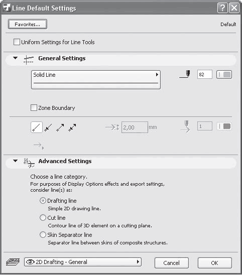 Для линий это окно называется Line Default Settings (Установки параметров линии по умолчанию) (рис. 3.2), а кнопка его вызова имеет вид