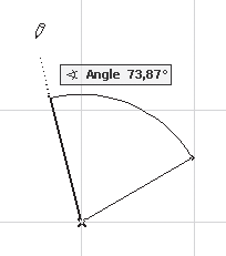 5. Если вы хотите получить дугу, то продолжаем процесс построения. Укажите положение конечной точки дуги перемещением указателя мыши. В процессе выполнения операции текущее положение будет динамически отображаться на экране. Синхронно с указателем мыши перемещается и табло с текущим значением угла дуги (рис. 3.12).