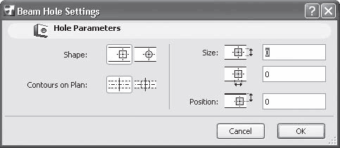 В появившемся окне Beam Hole Settings (Параметры отверстия балки) (рис. 4.35) есть четыре элемента управления: