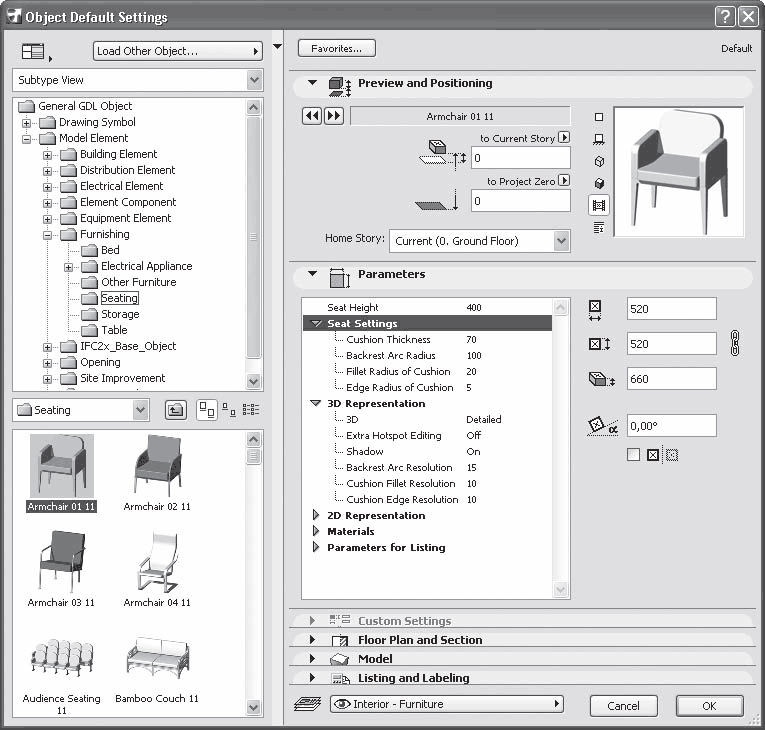 «Попутешествуйте» по библиотеке стандартных объектов ArchiCAD, чтобы приобрести навыки работы с ней, составить впечатление о ее возможностях и получить представление о том, где что находится.