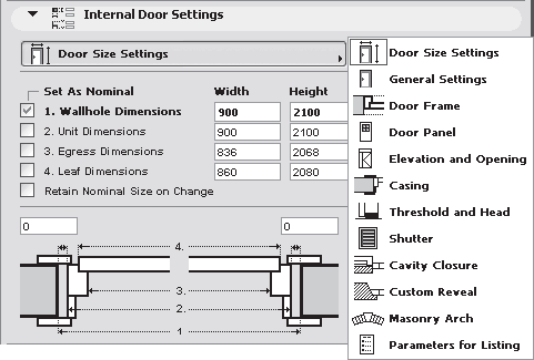 Рассмотрим самую, пожалуй, интересную область – Internal Door Settings (Параметры внутренней двери). Основной элемент управления – кнопка, щелчок на которой вызывает меню разделов данной области (рис. 5.6).